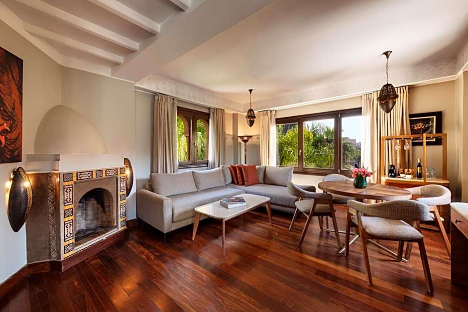 Offering views of the Koutoubia Mosque and of the Atlas Mountains, this air-conditioned suite has a sauna, spa bath and a fireplace. It features a separated seating area, a satellite TV, a mini-bar. A coffee machine is also provided.